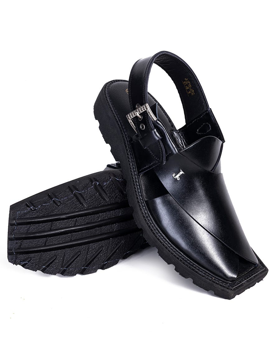 SHINY BLACK PLAIN PESHAWARI SANDALS