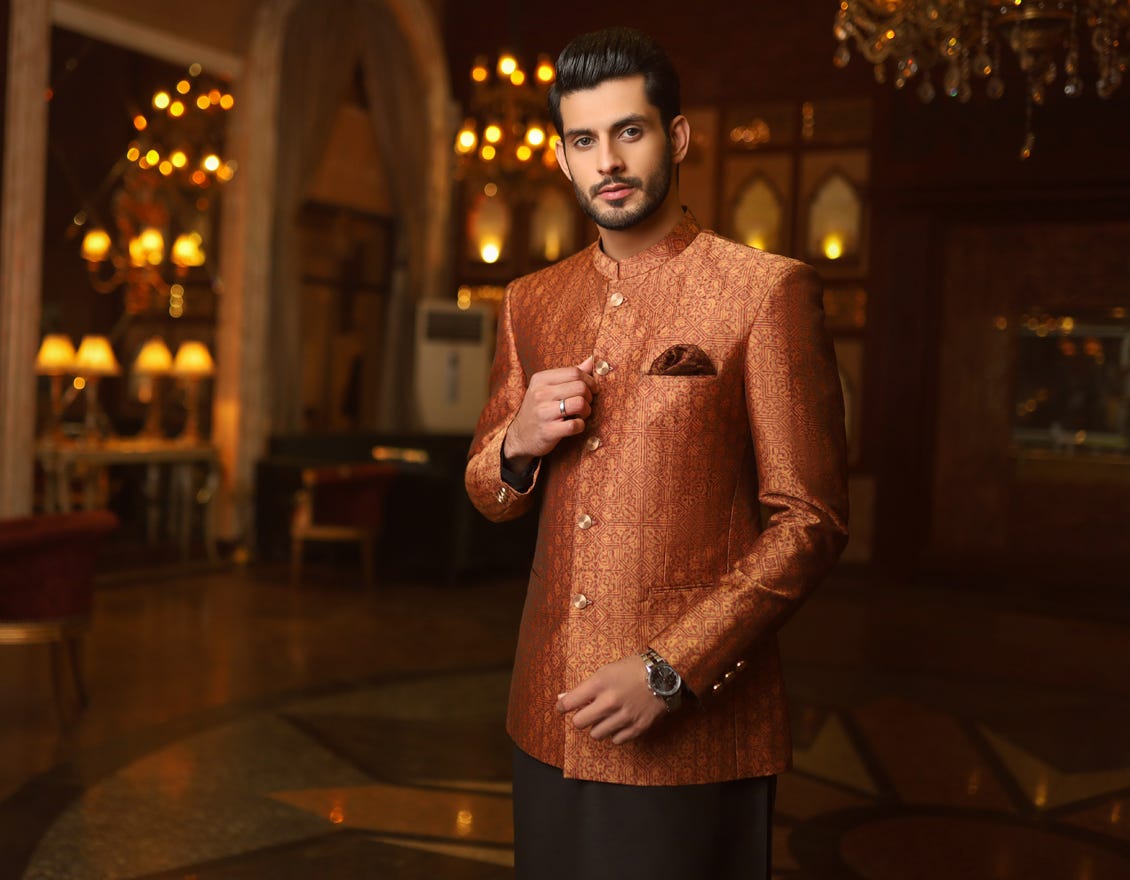 Formal Prince Coat for Men on Jamawar Fabric
