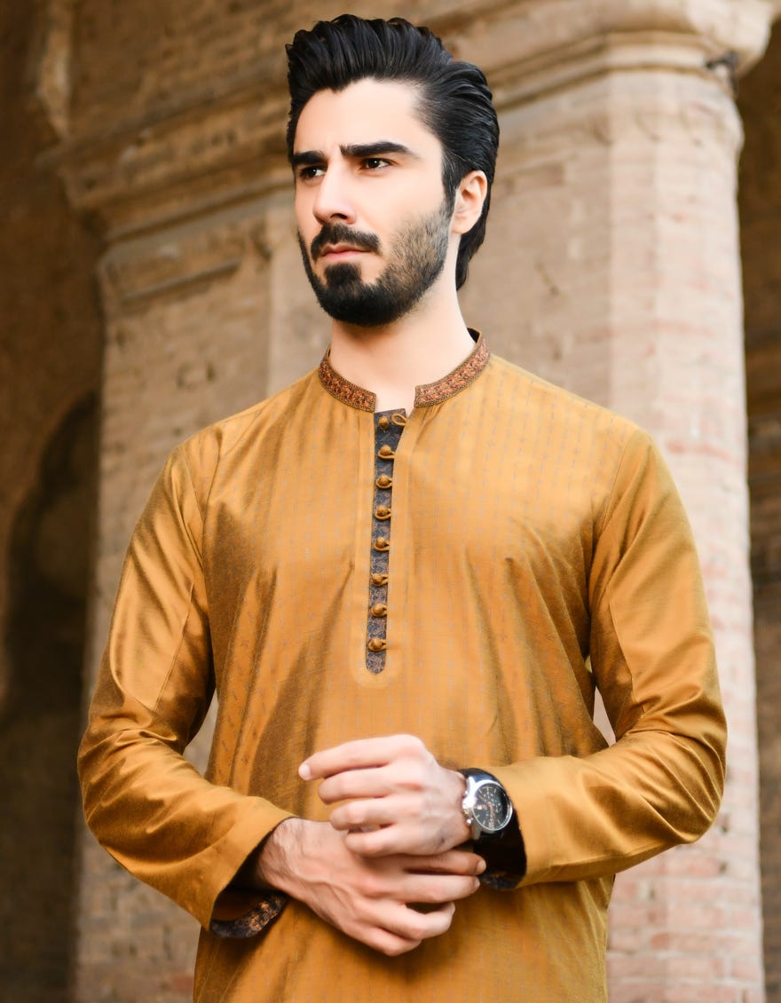 | Short Description | Crafted with care and style, this gold brown blended special kurta features a classic design, rich fabric, and elegant details, making it perfect for special events and celebrations. |