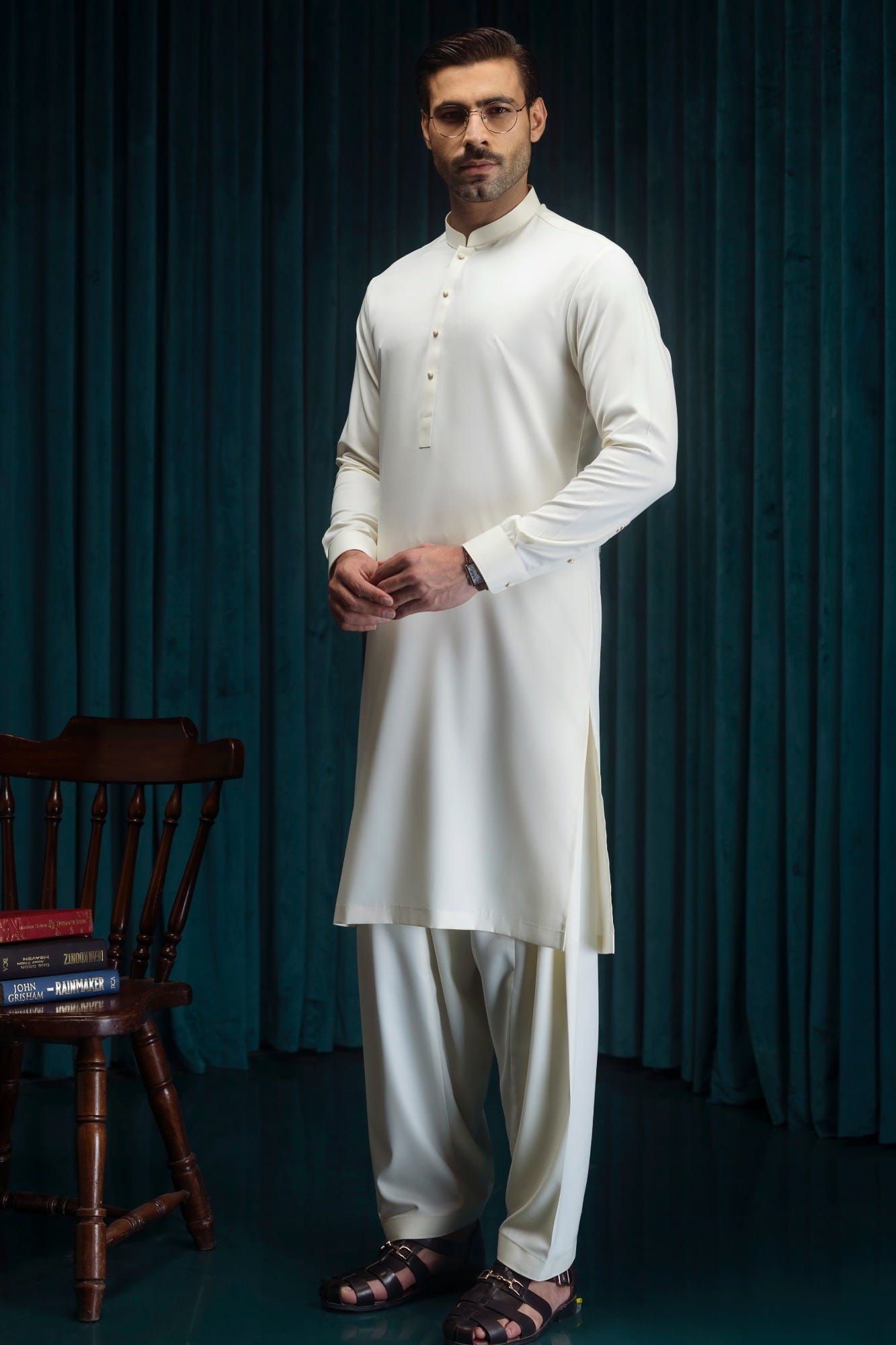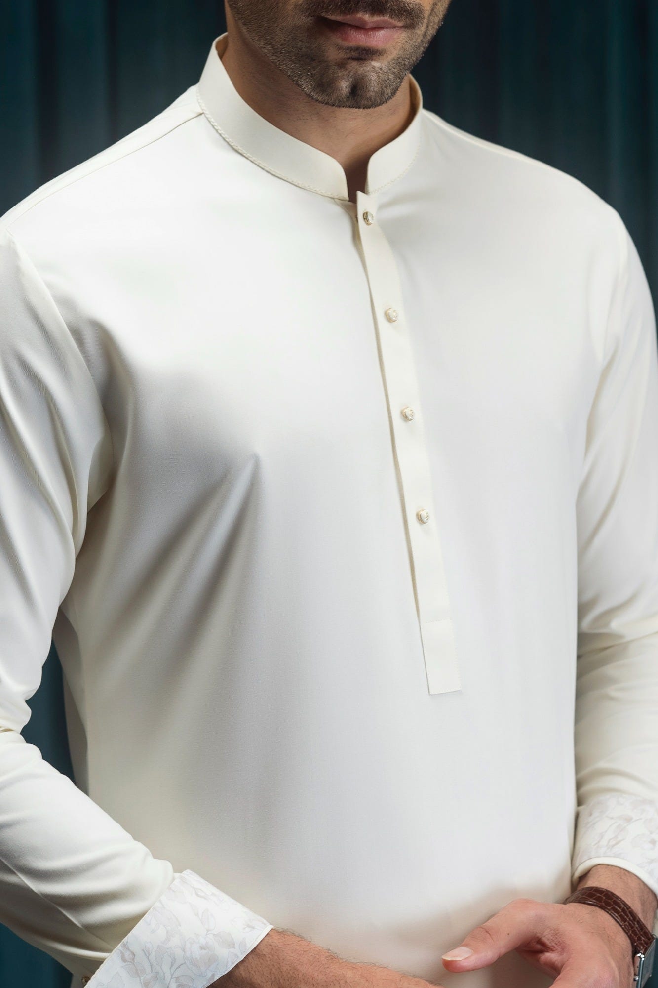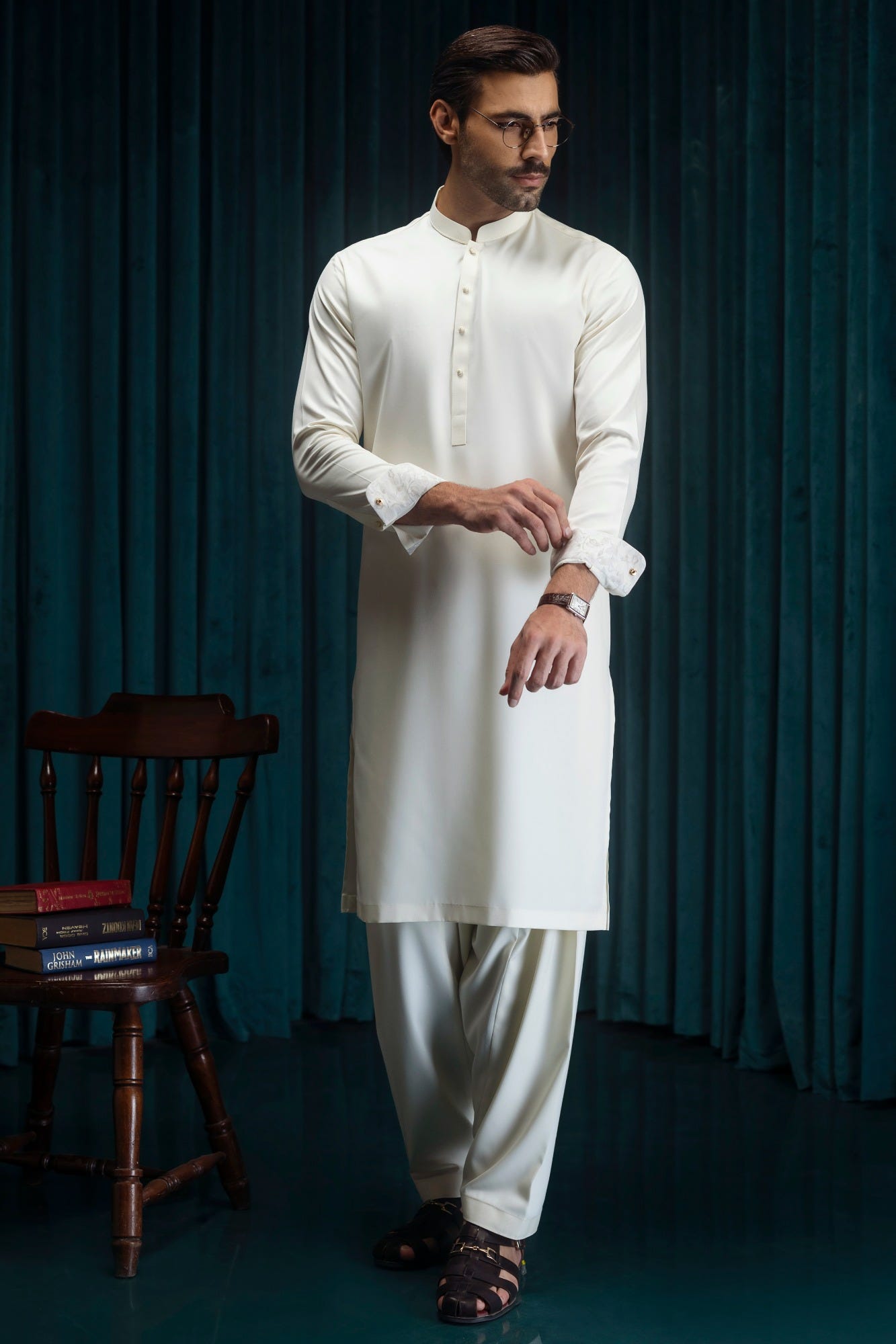 Rs.9,330.00Formal Suit With Self-Fabric Waistcoat. Embroidery on Collar, Back Yoke and Cuffs