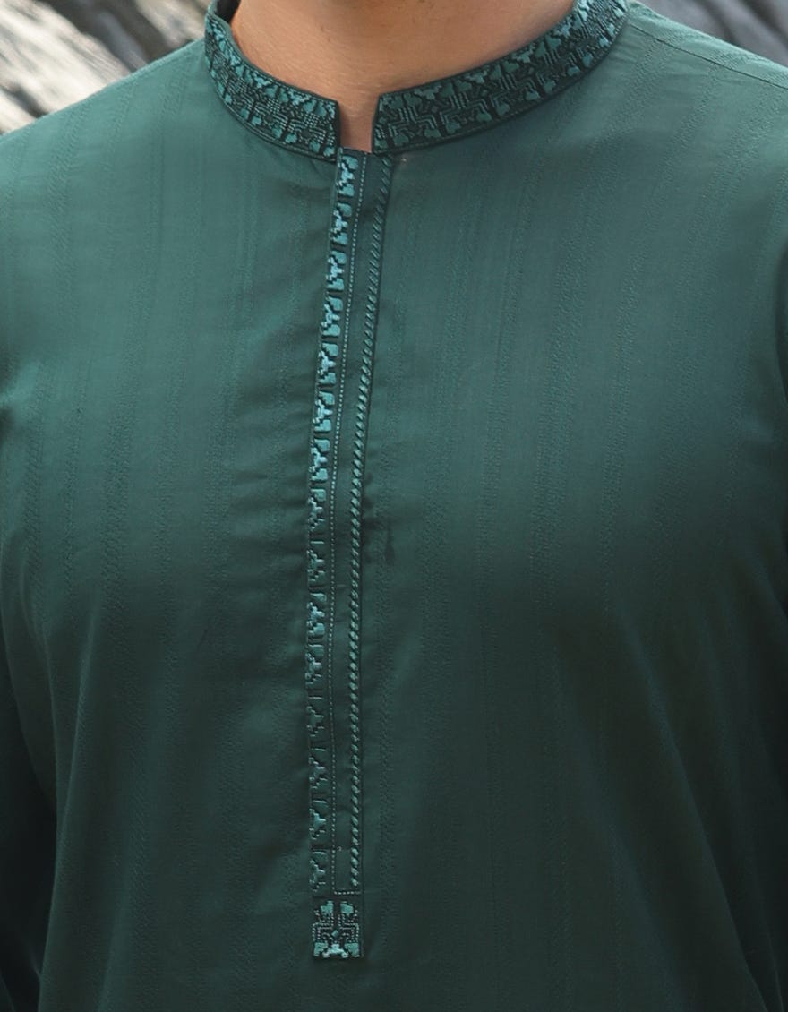 Short Description With subtle detailing and a refined silhouette, this Bottle Green Cotton Semi-Formal Kurta embodies understated elegance, perfect for semi-formal gatherings and events.