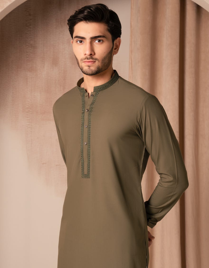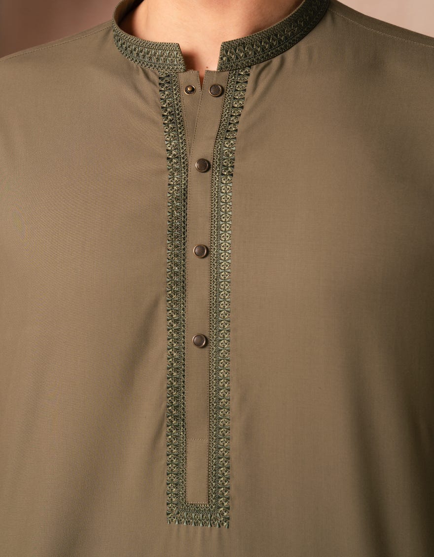 • Kurta / OLIVE SEMI-FORMAL KURTA