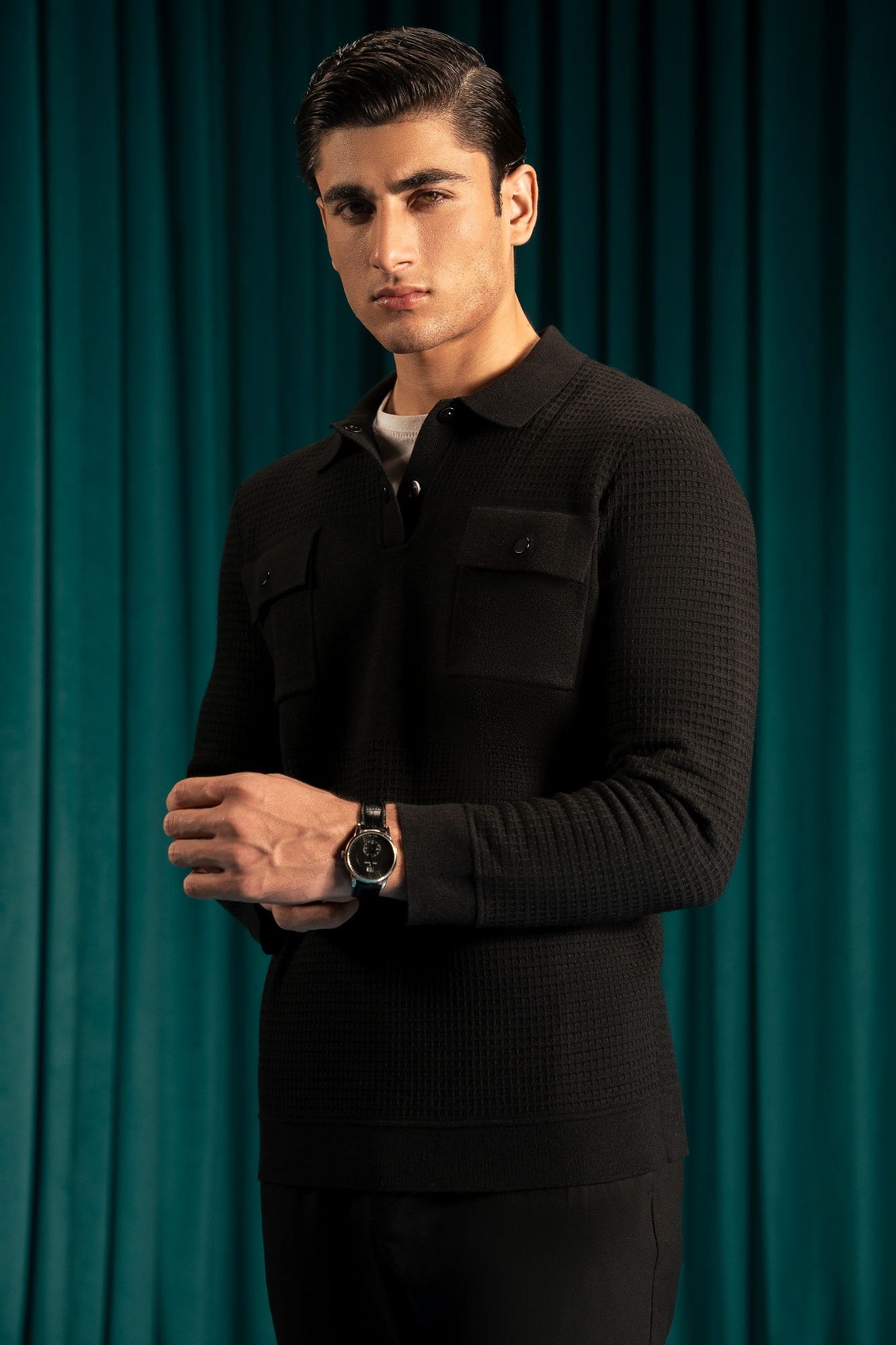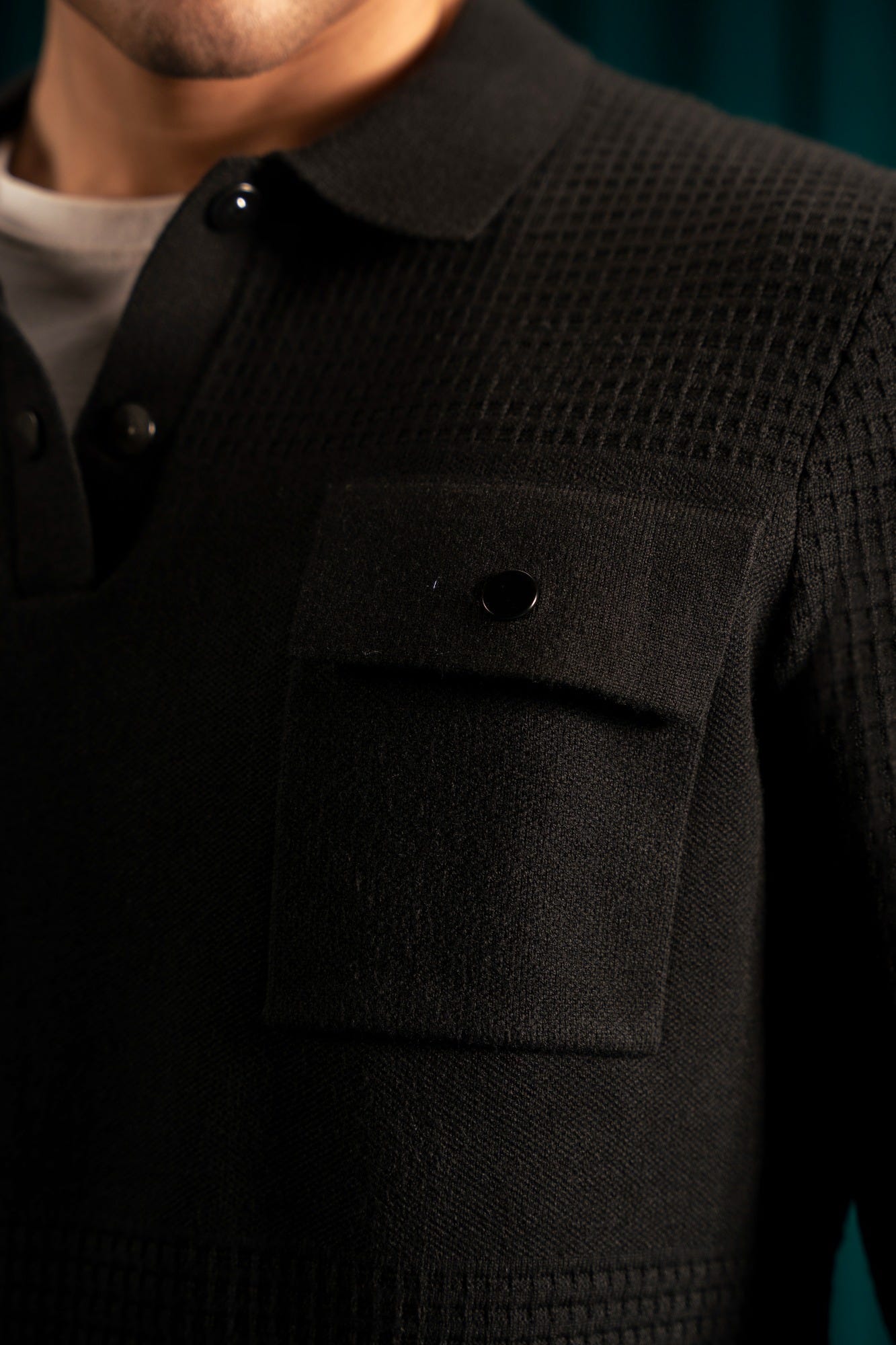 BLACK VISCOSE HALF ZIPPER SWEATER | CC-SWT-0030