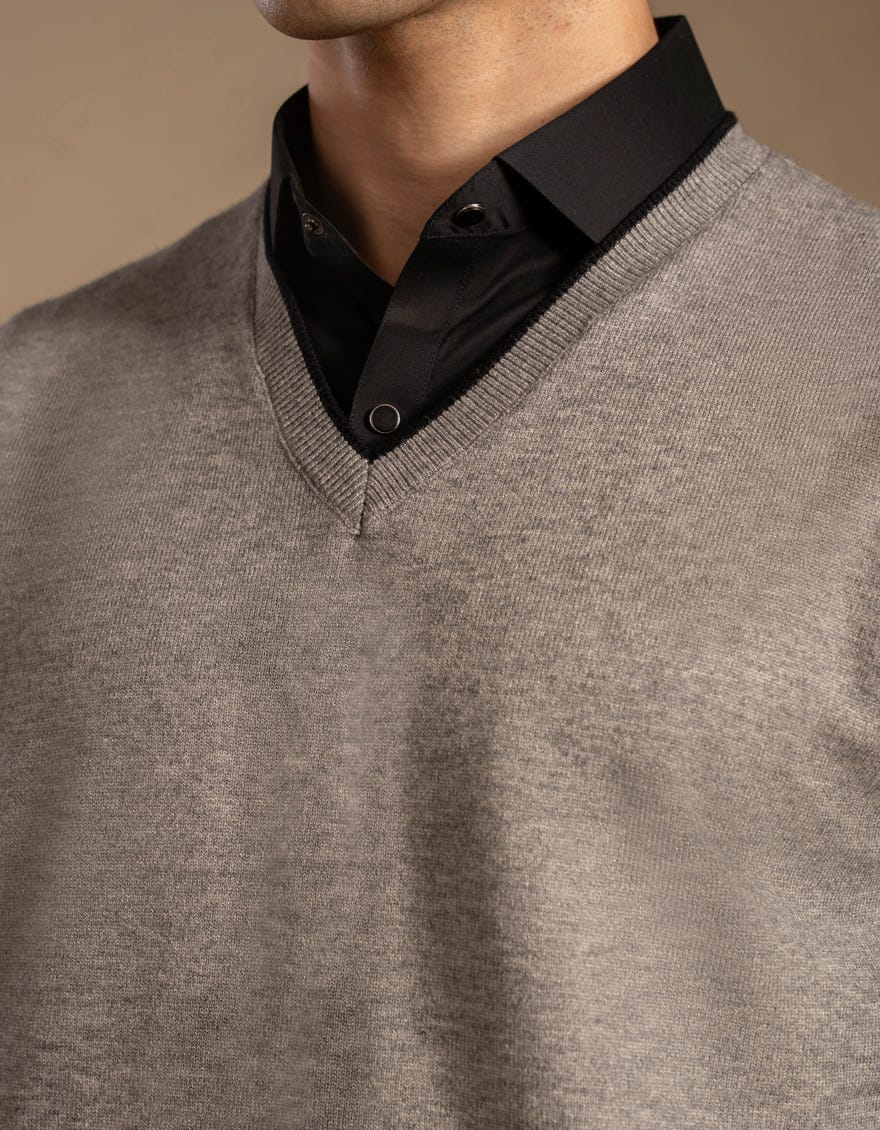 GREY V-NECK SWEATER | JJ-MSWSL-20001
