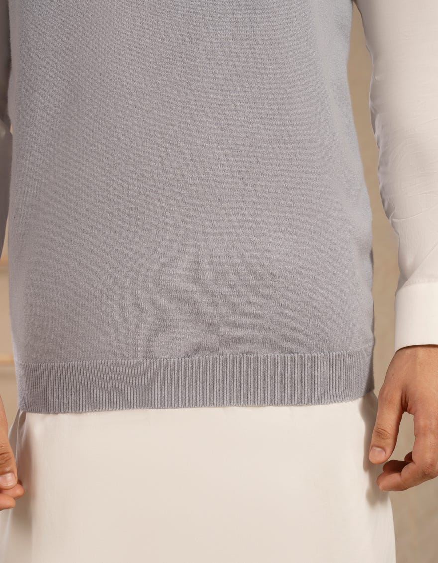 SMOKE GREY V-NECK SWEATER | JJ-MSWSL-20006