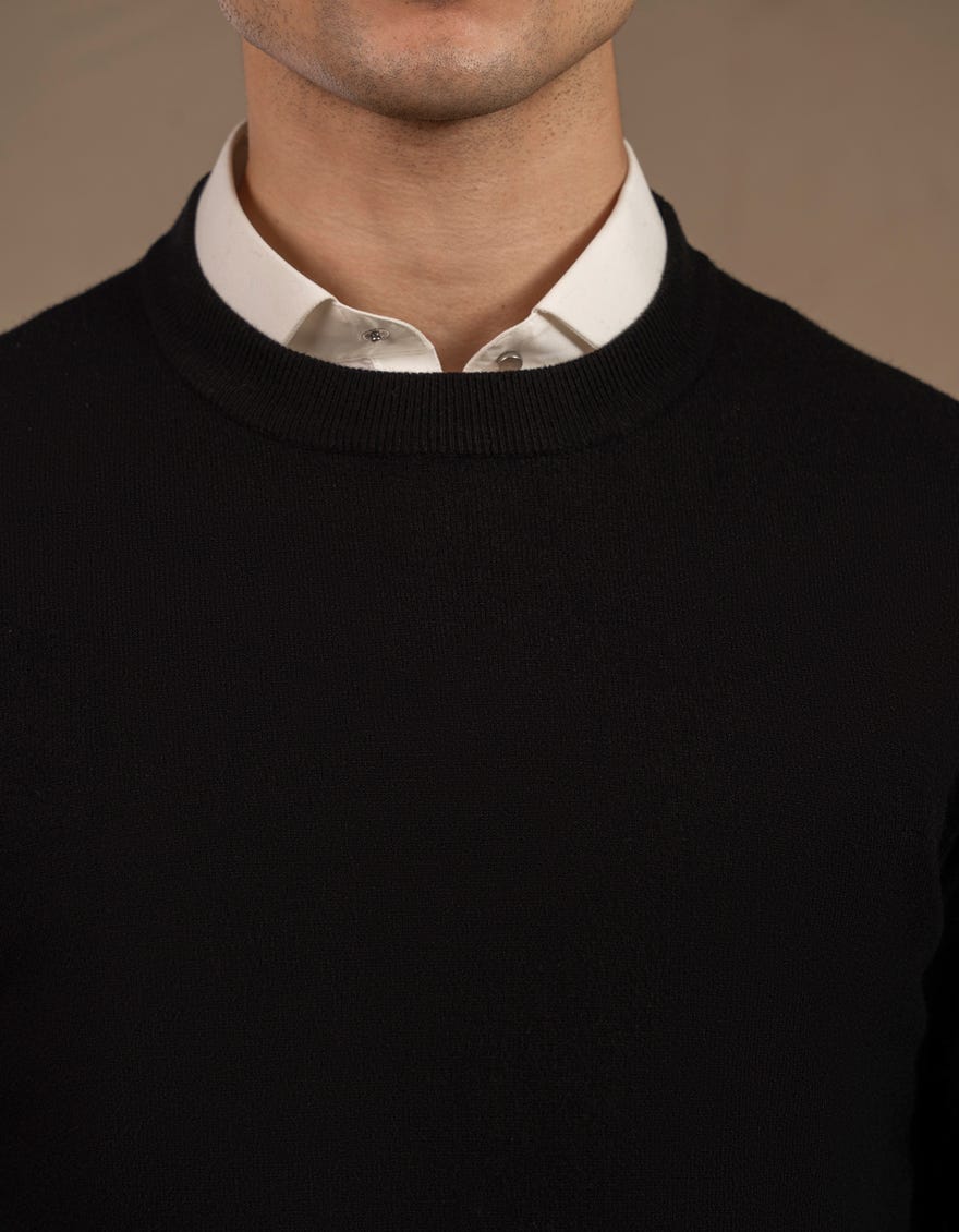BLACK CREW NECK SWEATER | JJ-MSWFS-20009
