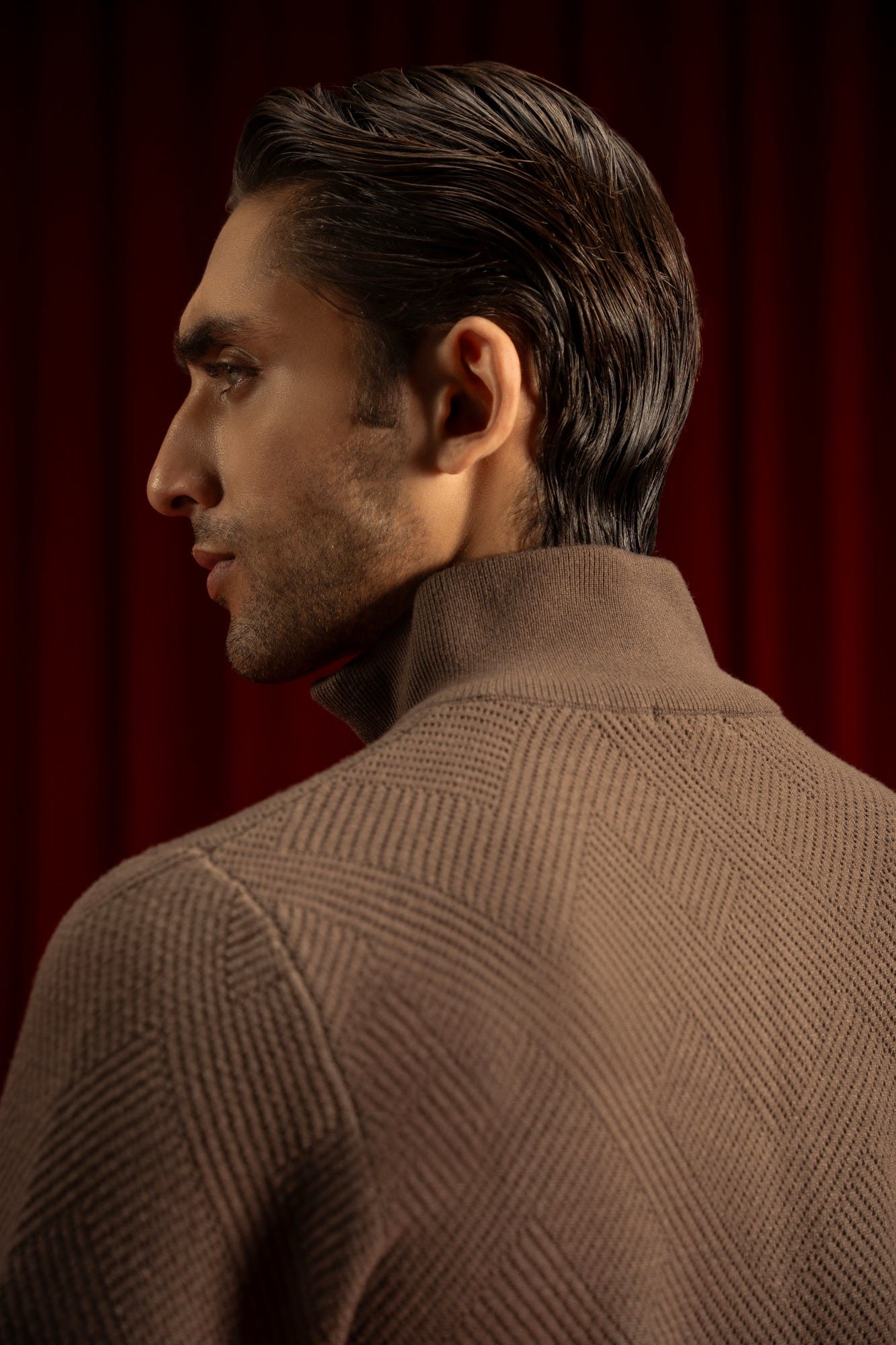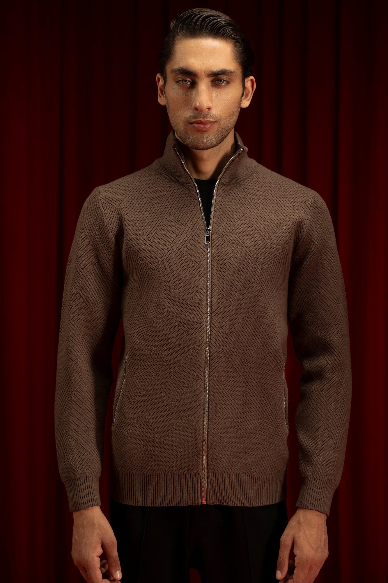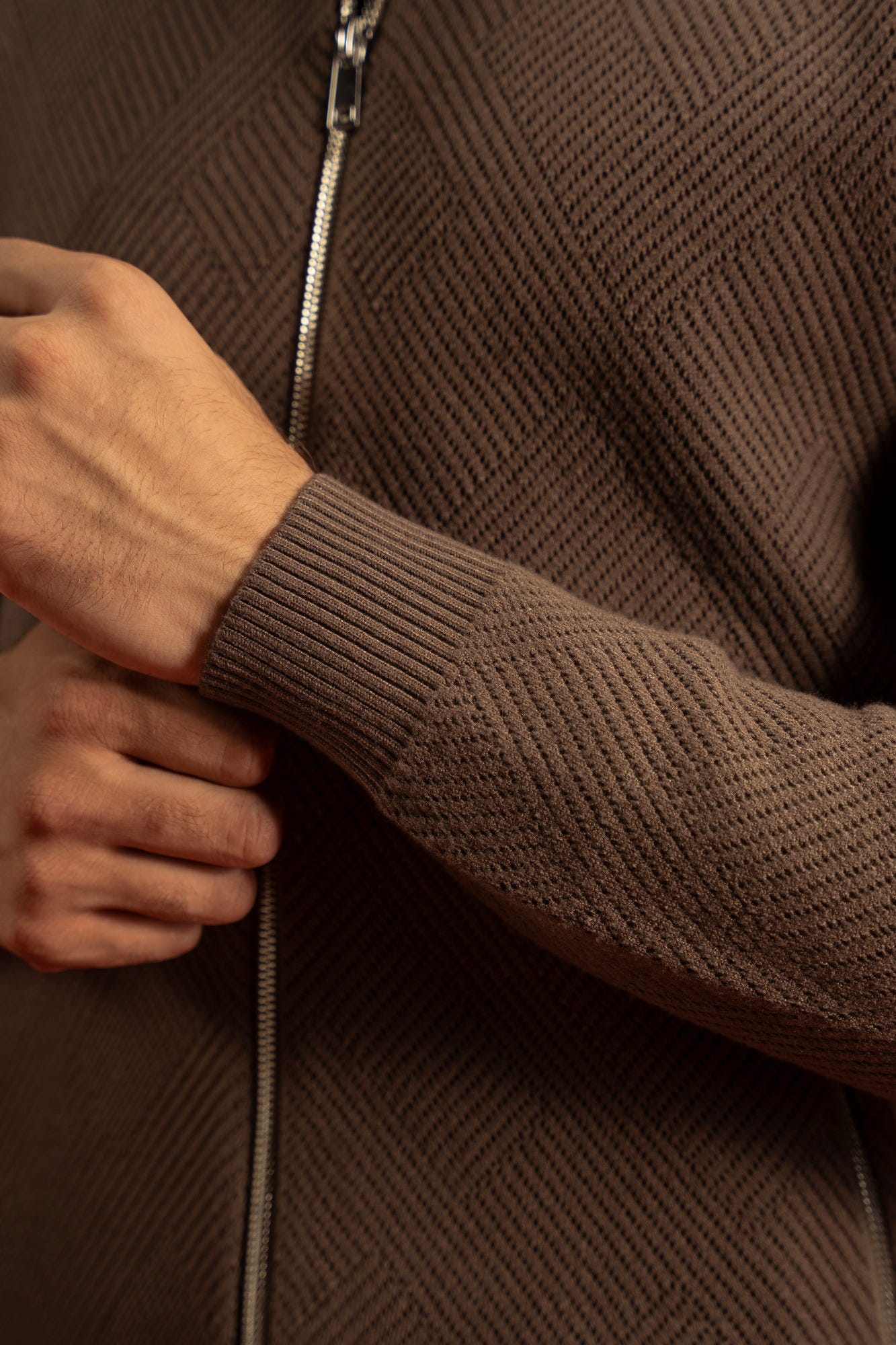 BROWN GAUGE CARDIGAN ZIPPER | CC-SWT-0019