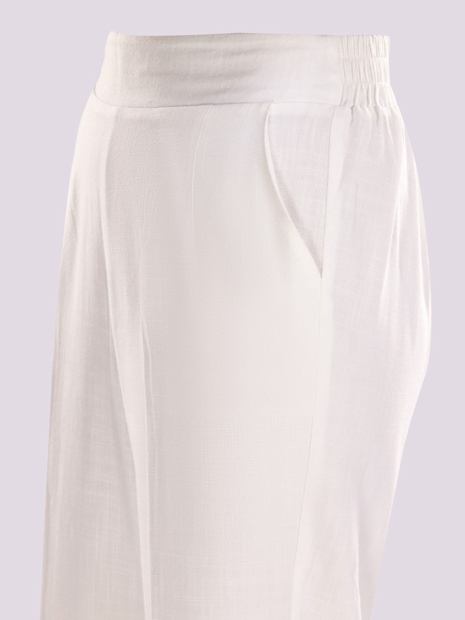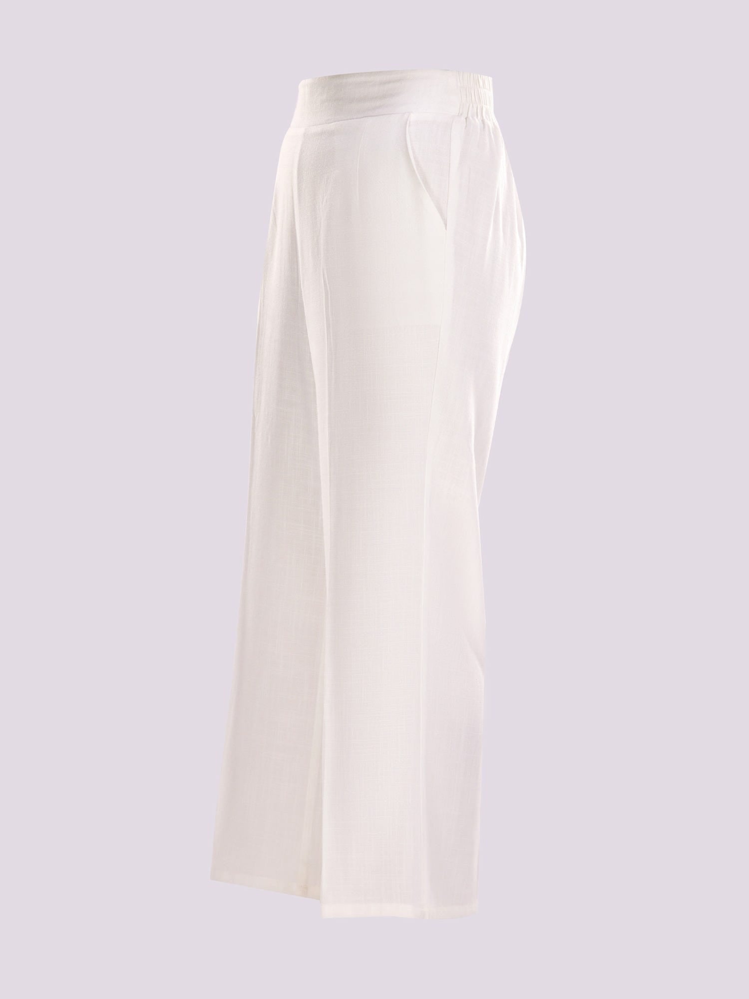 | Short Description | Composition 70% Viscose - 30% Linen Description High-waisted trousers with loose fit silhouette. Front is detailed with two darts, enhancing the tailored appearance, while two diagonal side pockets provide practical functionality. An elasticated back waistband ensures a comfortable fit and adds subtle volume to the wide-leg design. |