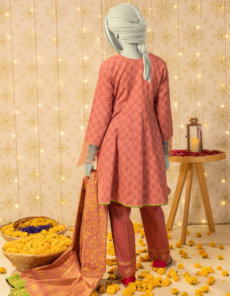 PINK DOBBY EMBROIDERED 3PC STITCHED