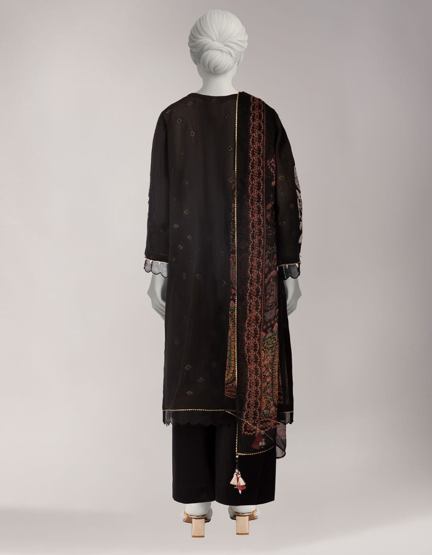 | Short Description | ZARIYA | Embroidered 3 Piece Embroidered Lurex Shirt: 3 Meters Add-On: * The stitch style and decorative accessories featured in the dress are for illustrative purposes only and are not included as part of the product. |