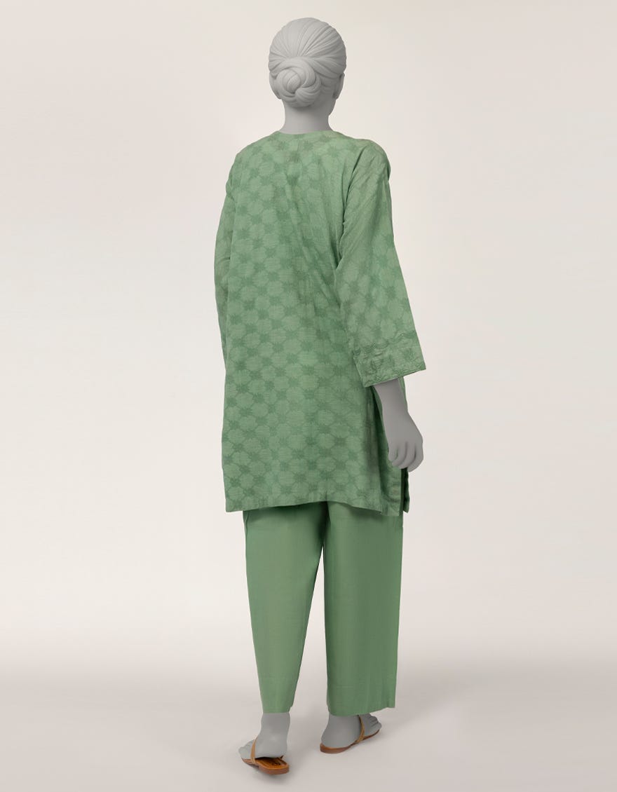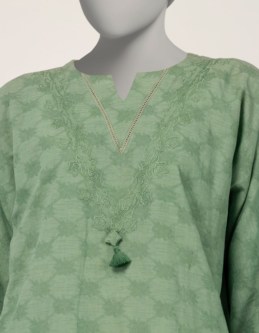 GREEN DOBBY EMBROIDERED 2PC STITCHED
