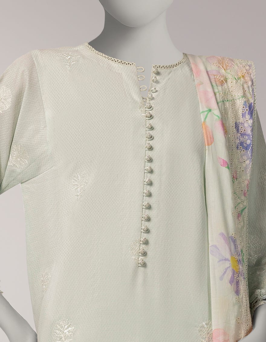 GREEN DOBBY EMBROIDERED UNSTITCHED 3PC