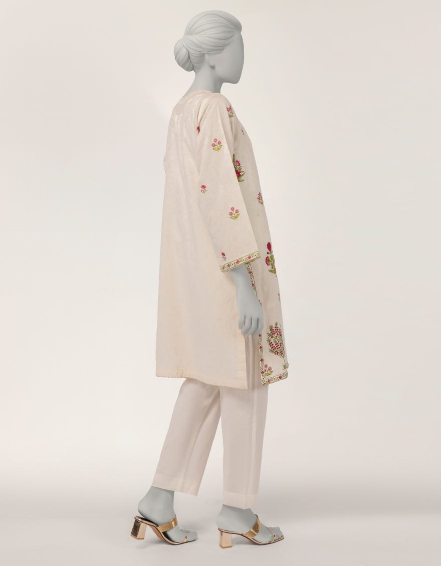 Home / Featured Collection / OFF WHITE DOBBY EMBROIDERED KURTI
