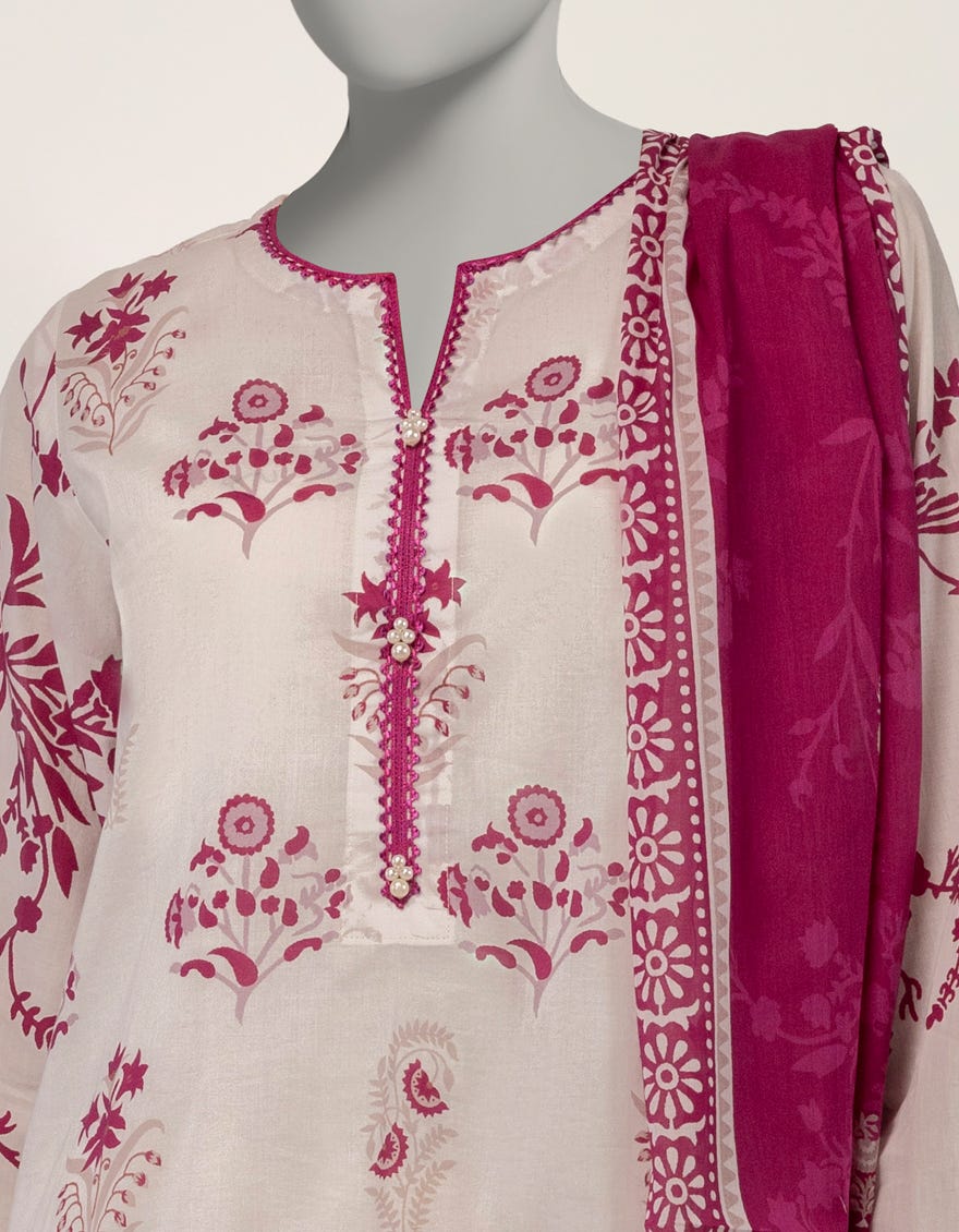 WHITE LAWN DIGITAL PRINTED 3PC STITCHED