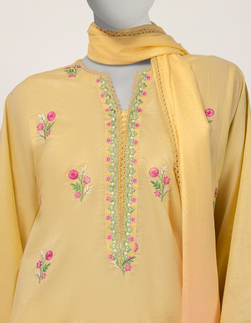 YELLOW LAWN EMBROIDERED 3PC STITCHED