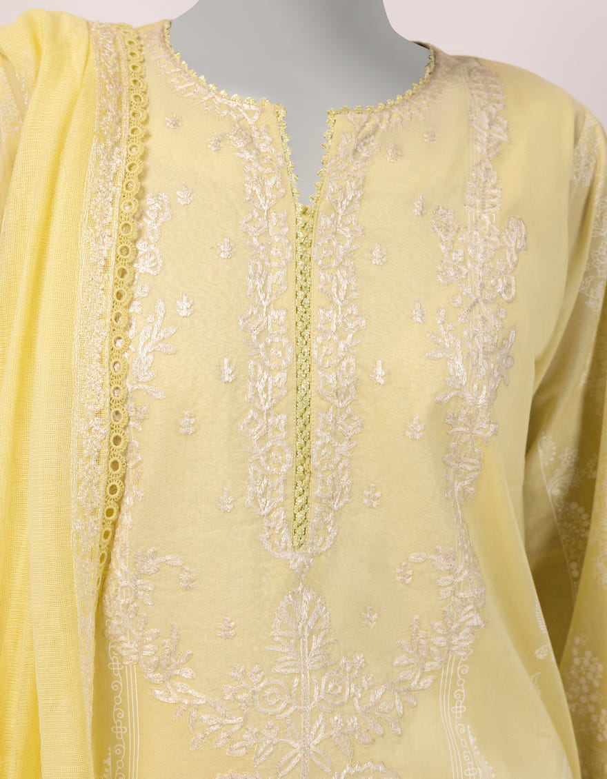 YELLOW LAWN PASTE PRINTED 3PC STITCHED