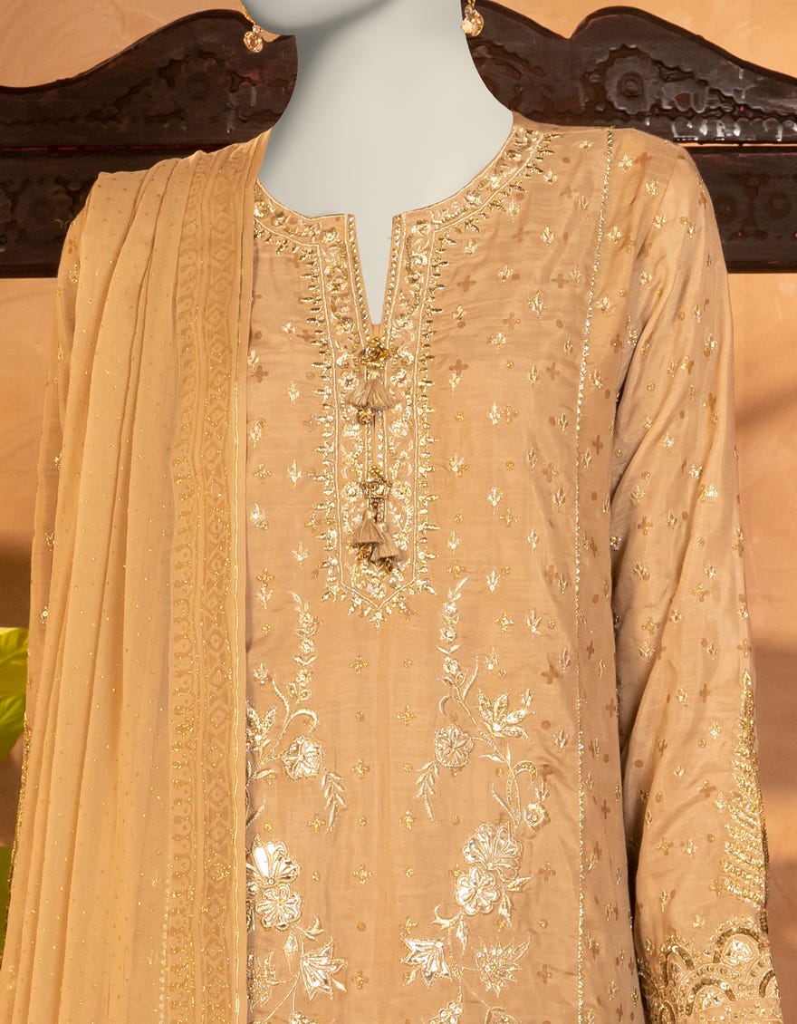• Ready to Wear / BEIGE RAW SILK EMBROIDERED 3PC STITCHED