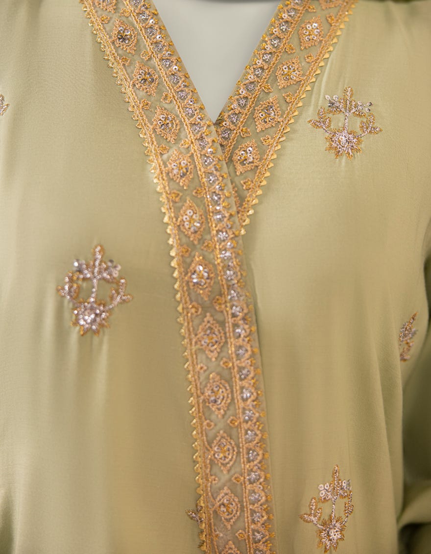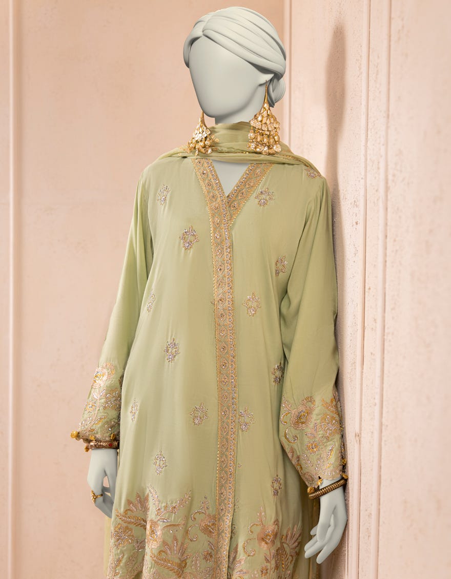 • Ready to Wear / GREEN ORGANZA EMBROIDERED 3PC STITCHED