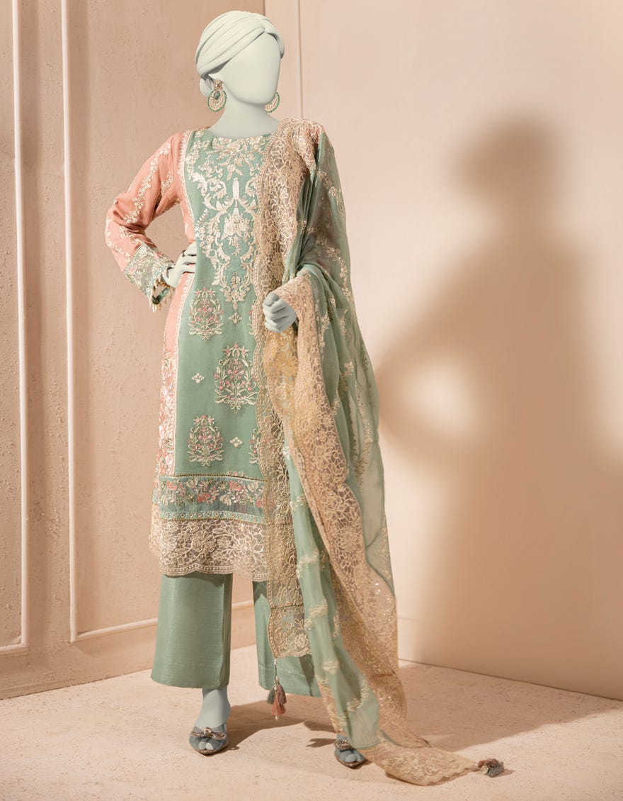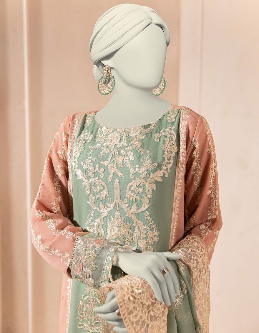 PEACH CHIFFON EMBROIDERED 3PC STITCHED