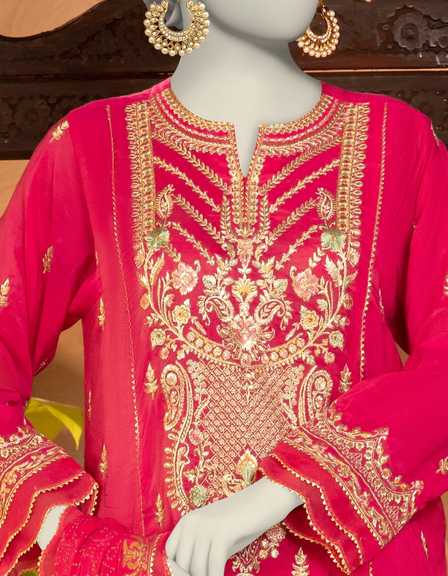 PINK PAPER COTTON EMBROIDERED 3PC STITCHED