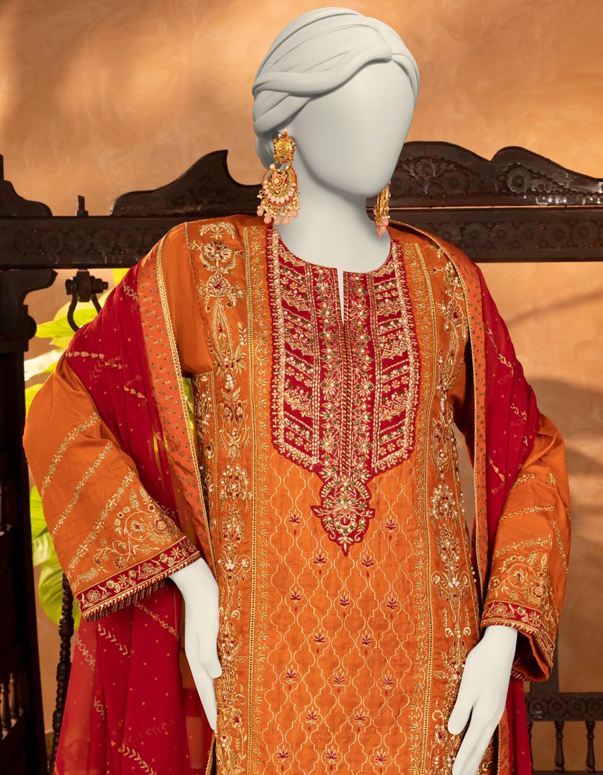 RUST RAW SILK EMBROIDERED 3PC STITCHED