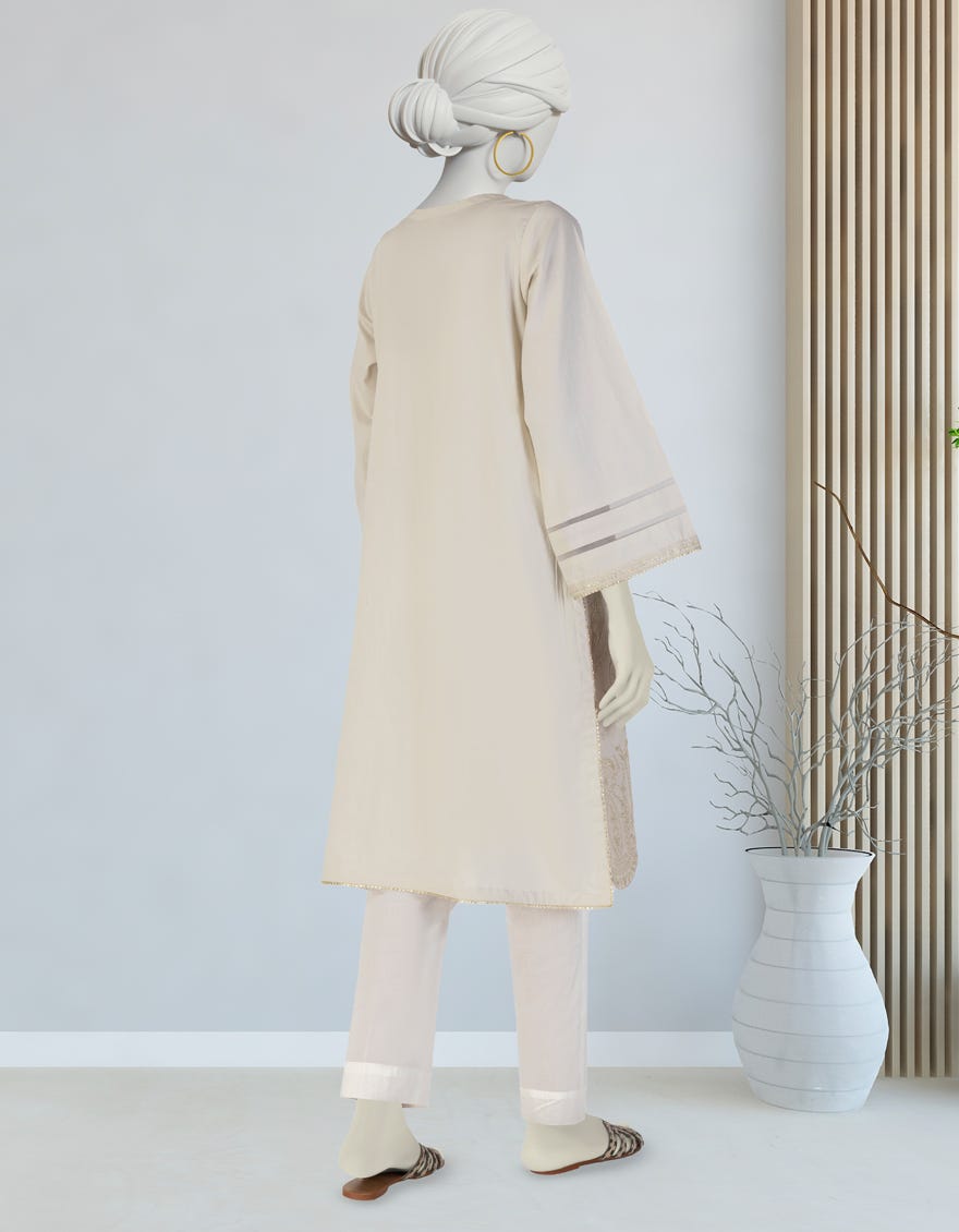 BEIGE LAWN EMBROIDERED KURTI