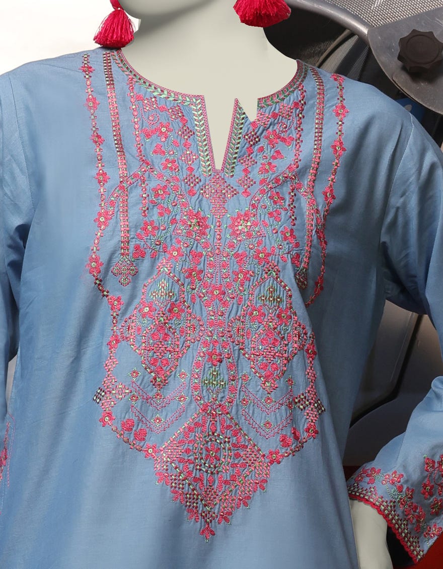 BLUE LAWN EMBROIDERED KURTI | JJLK-S-JSS-25-344