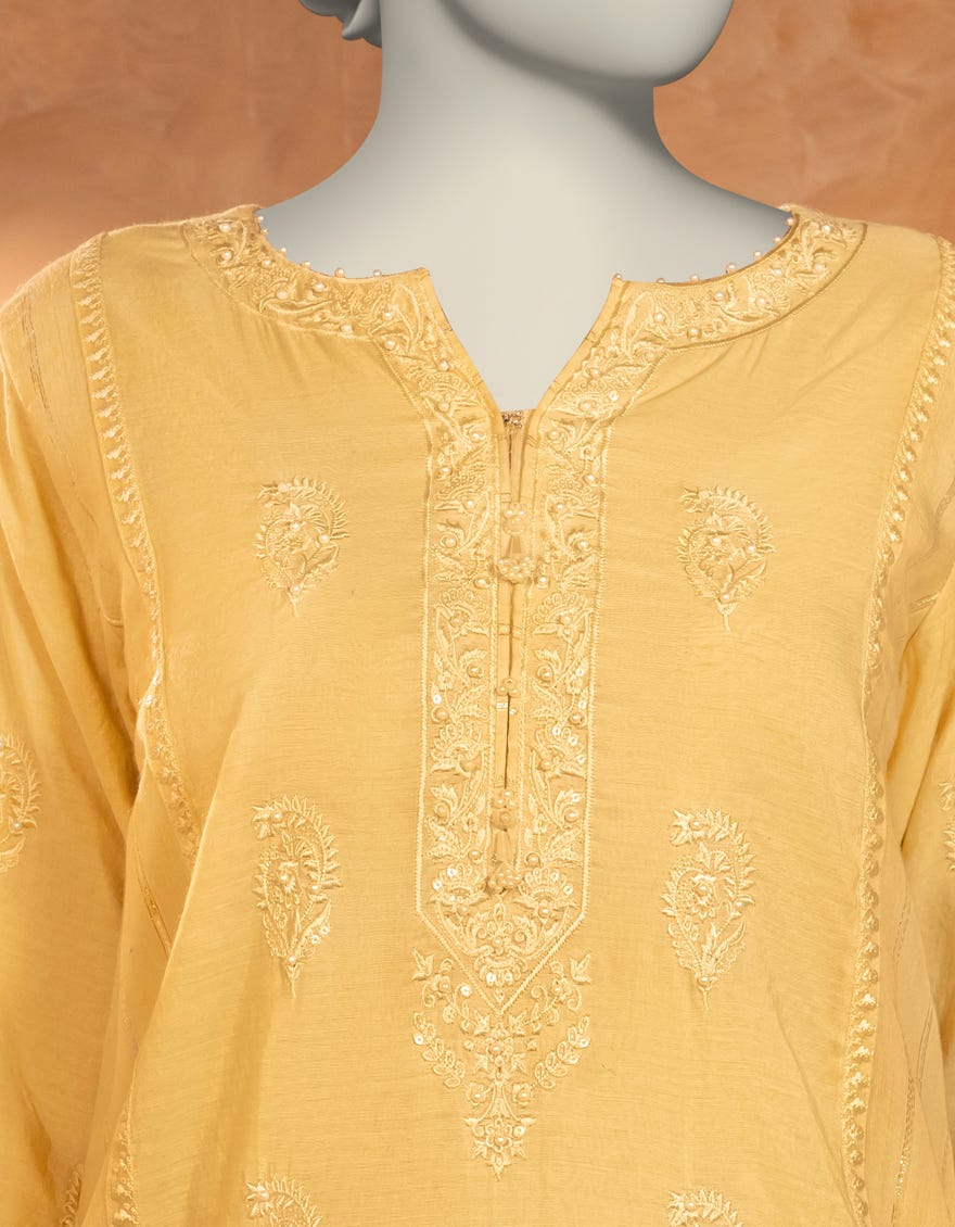 YELLOW PAPER COTTON EMBROIDERED KURTI