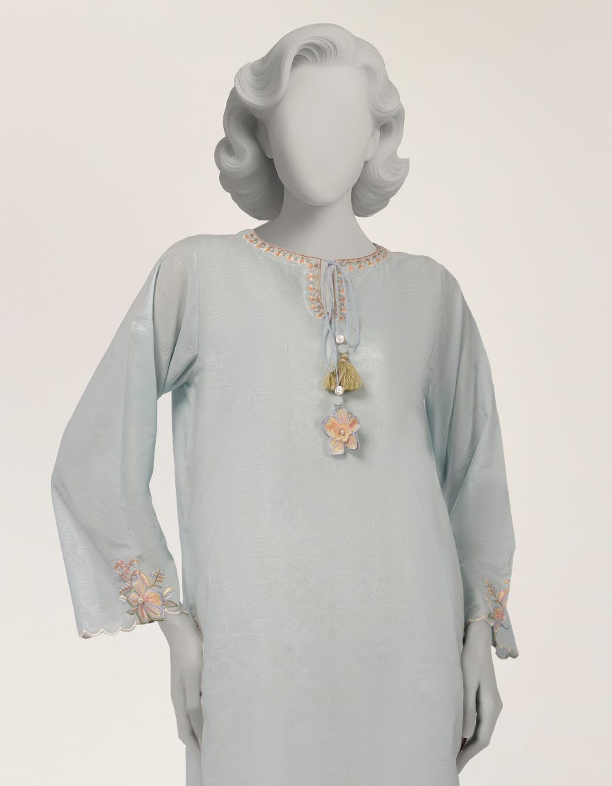BEIGE DOBBY EMBROIDERED KURTI