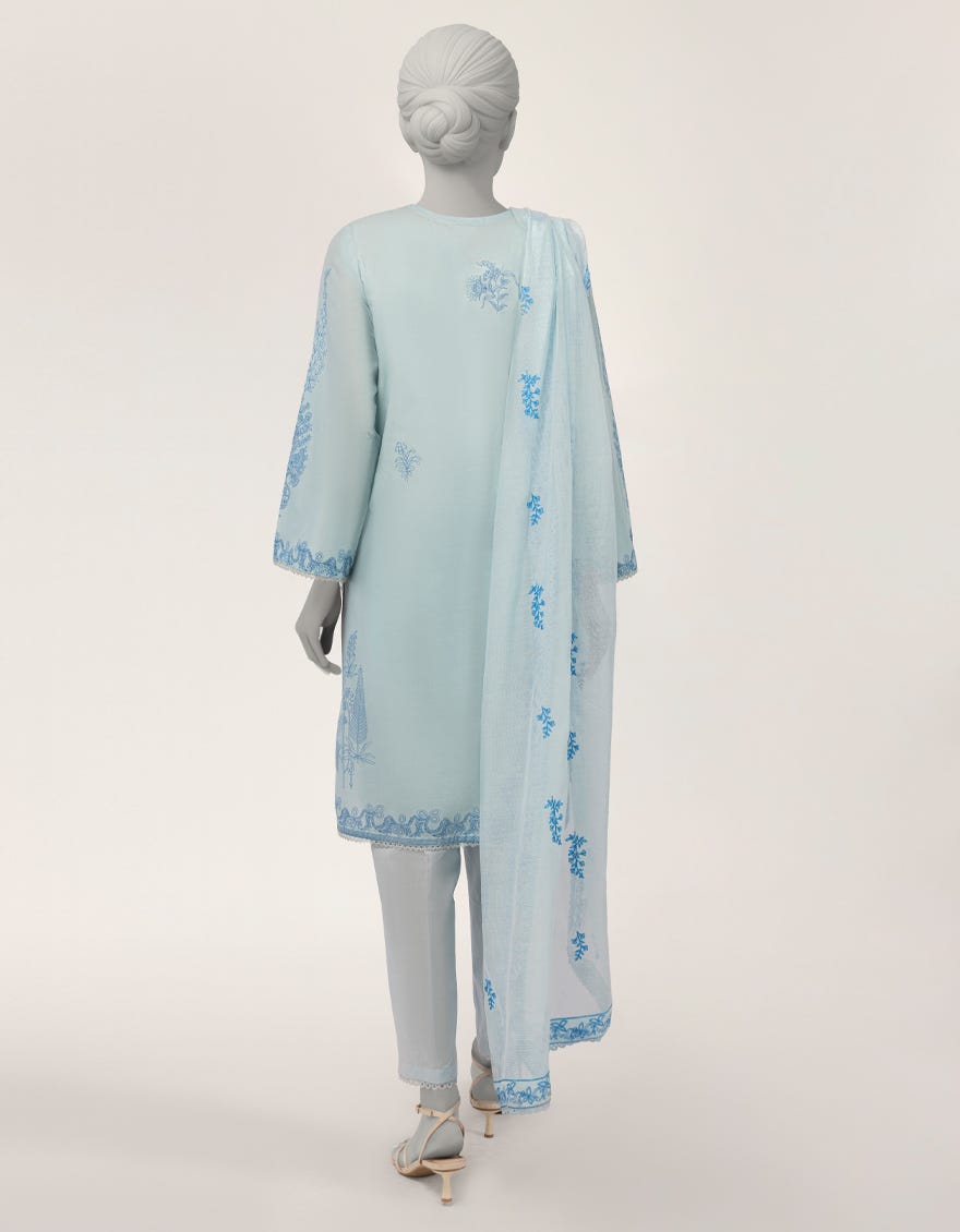 BLUE LAWN EMBROIDERED STITCHED 3PC