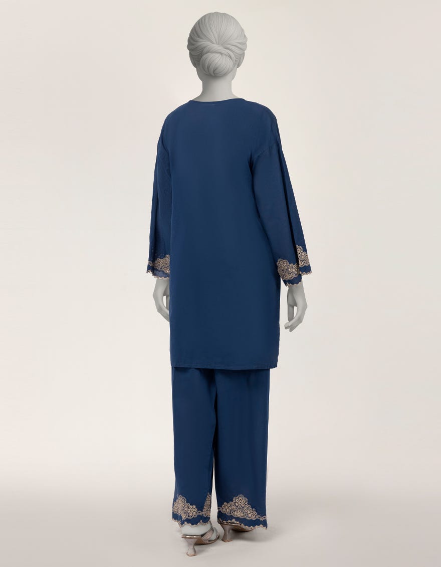 BLUE LAWN SCHIFFLI 2PC STITCHED