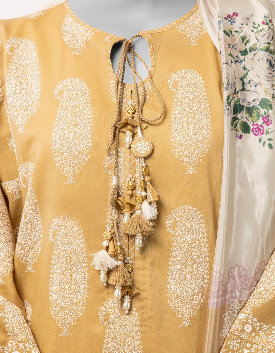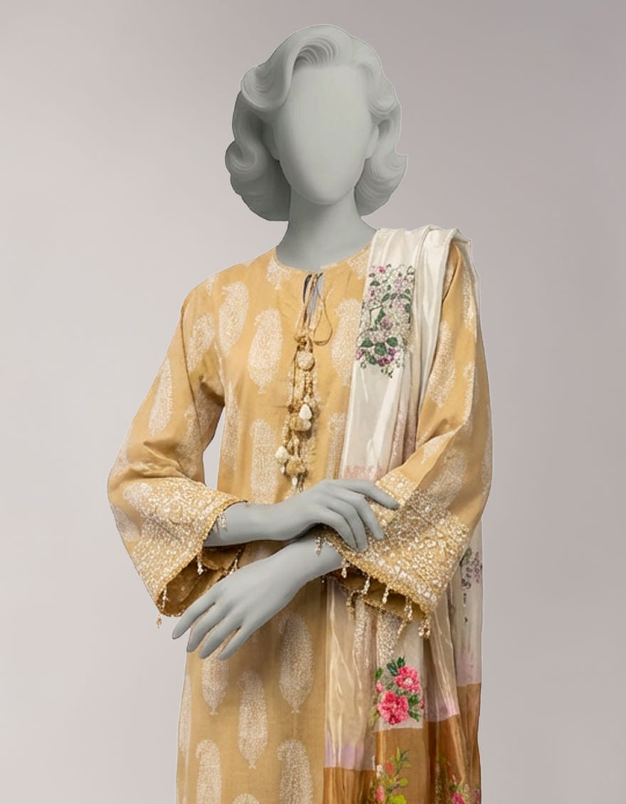 BEIGE LAWN PASTE PRINTED UNSTITCHED 3PC