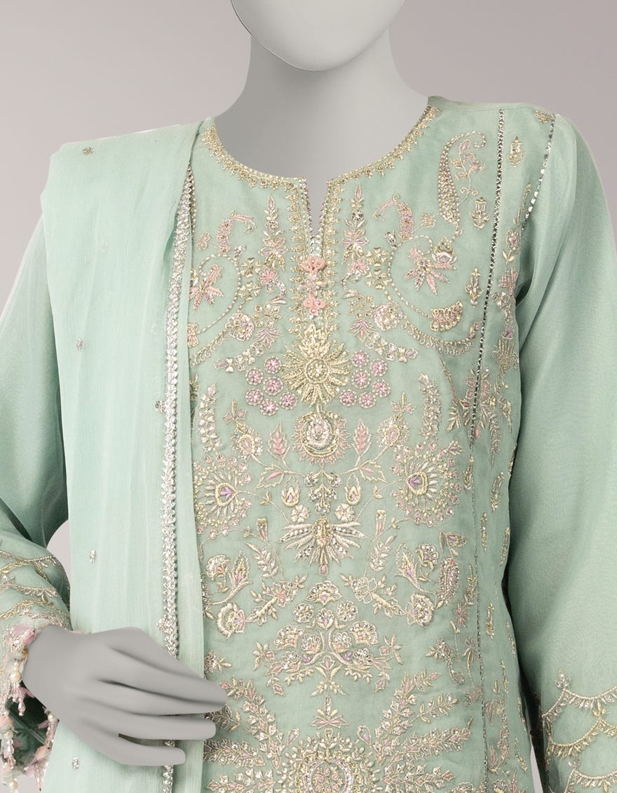 • 3 Piece / GREEN ORGANZA EMBROIDERED UNSTITCHED 3PC