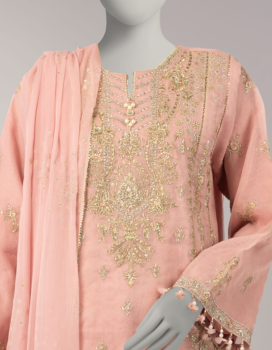 PINK ORGANZA EMBROIDERED UNSTITCHED 3PC