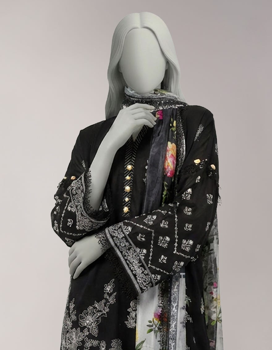 BLACK LAWN PASTE PRINTED UNSTITCHED 3PC