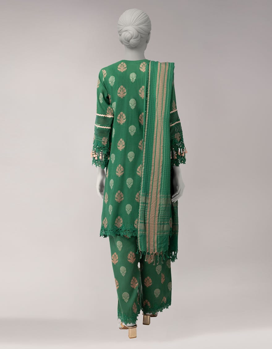 GREEN DOBBY EMBROIDERED UNSTITCHED 3PC