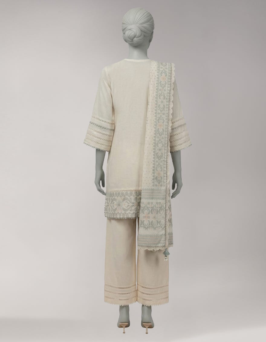 OFF WHITE JACQUARD SHIMMER UNSTITCHED 3PC