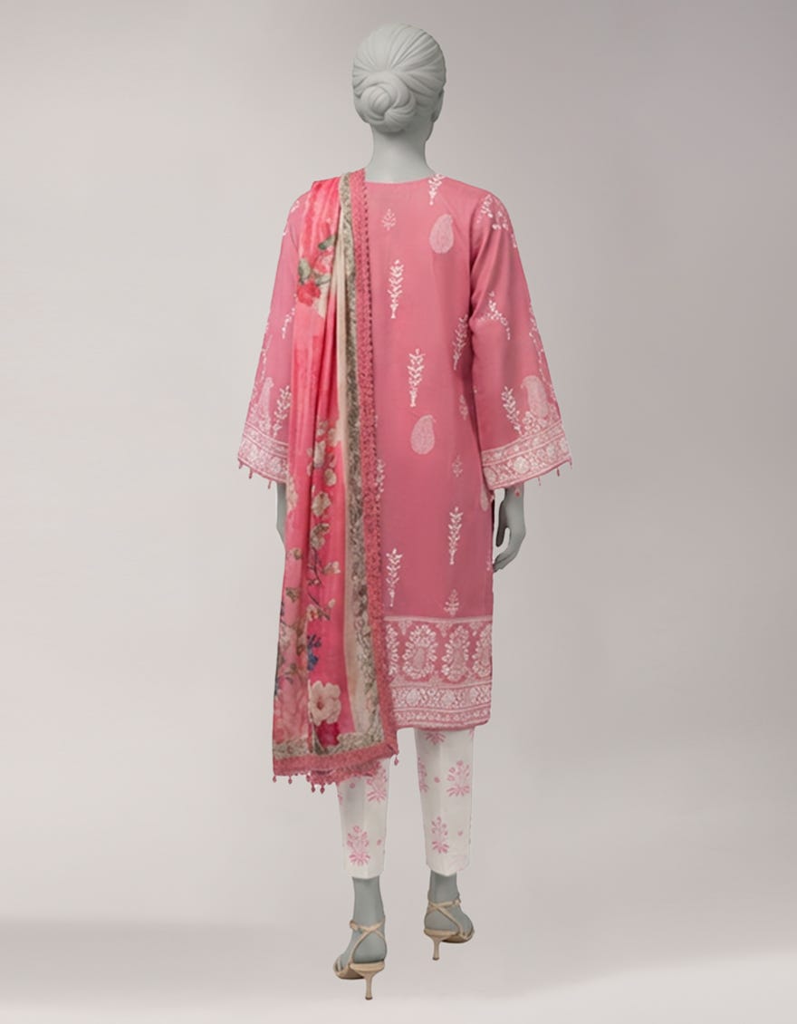 PINK LAWN PASTE PRINTED UNSTITCHED 3PC