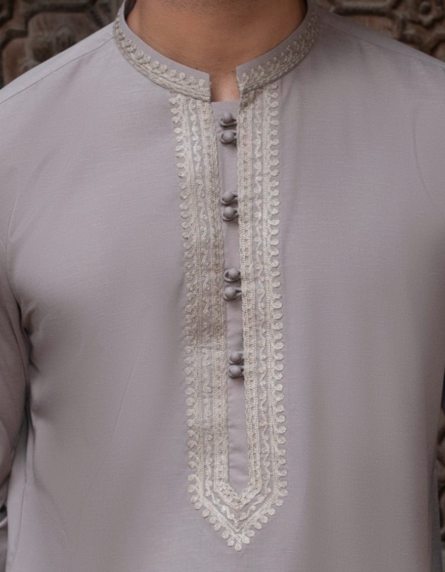 | Short Description | This capsule collection celebrates Pakistan's rich cultural heritage through sustainable fabrics, carefully selected colours that adorn power. Notably reviving Aari work in menswear, a centuries-old craft originating from the Mughal Era, highlighting its importance as a traditional art form in today's metropolitan world. The local artisans use their long-acquired skills to develop intricate designs to give a royal feel to the fabric. This delicate technique pays homage to Pakistan's history and roots, blending timeless elegance with modern style. |